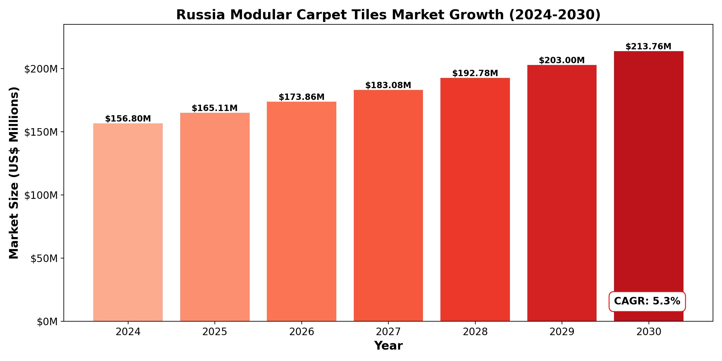 - Russia Modular Carpet Tiles Market Revenue, 2019-2024, 2024-2030, ($ millions)