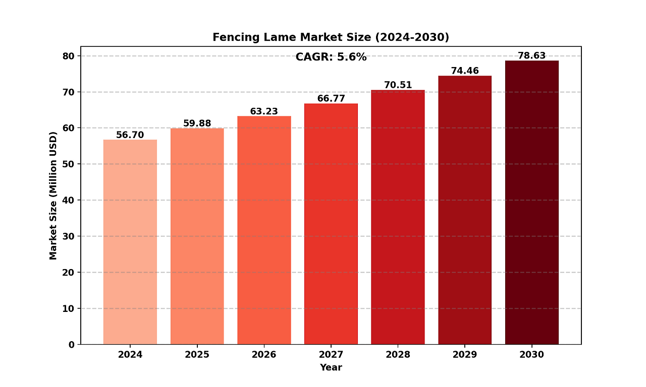 The global Fencing Lame market size was valued at US$ 56.7 million in 2024 and is projected to reach US$ 78.6 million by 2030, at a CAGR of 5.6% during the forecast period 2024-2030.