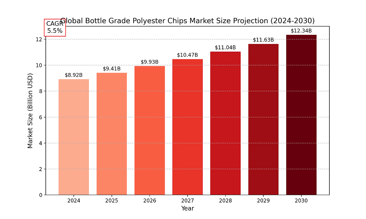 The global Bottle Grade Polyester Chips market size was valued at US$ 8.92 billion in 2024 and is projected to reach US$ 12.34 billion by 2030, at a CAGR of 5.5% during the forecast period 2024-2030.