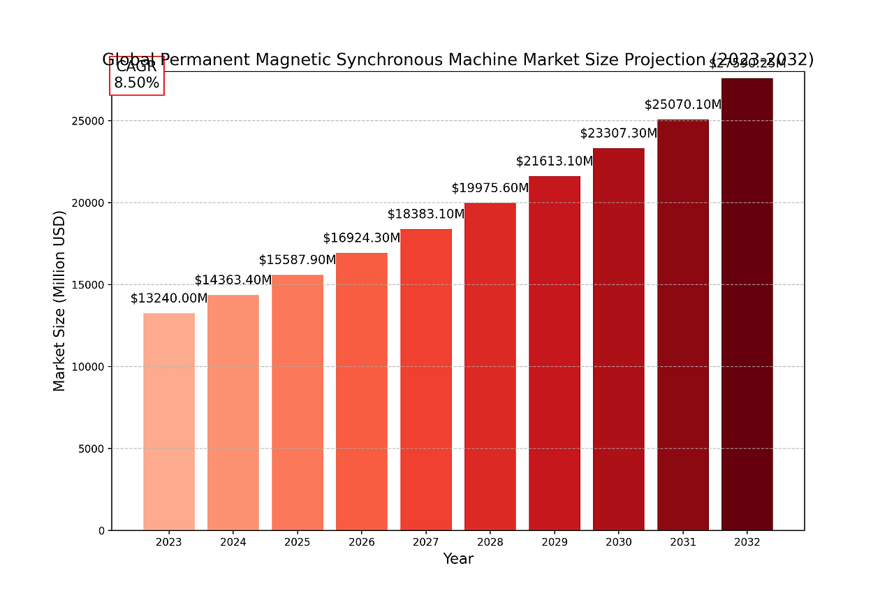 The "Global Permanent Magnetic Synchronous Machine Market" size was estimated at USD 13240 million in 2023 and is projected to reach USD 27590.25 million by 2032, exhibiting a CAGR of 8.50% during the forecast period.