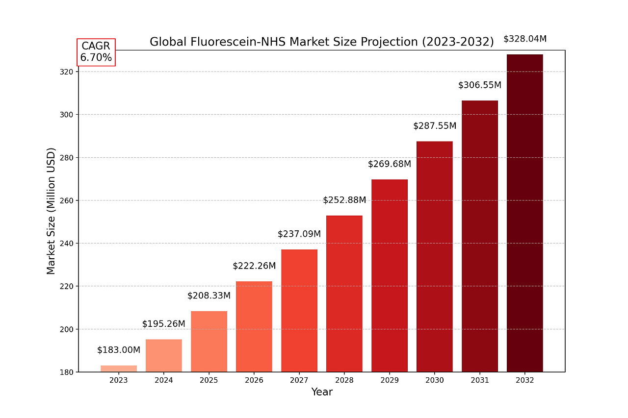 The global Fluorescein-NHS market size was valued at USD 183 million in 2023 and is projected to grow to USD 328.04 million by 2032, representing a robust CAGR of 6.70% during the forecast period.
