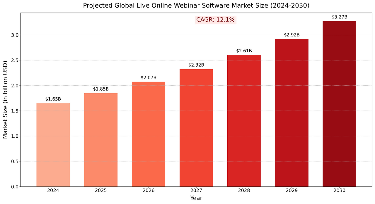 The global Live Online Webinar Software market size was valued at US$ 1.65 billion in 2024 and is projected to reach US$ 3.28 billion by 2030, at a CAGR of 12.1% during the forecast period 2024-2030.