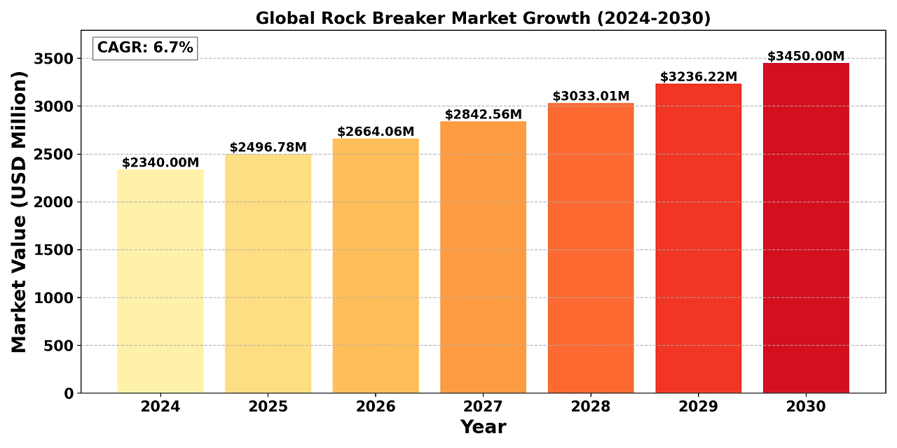 The "Global Rock Breaker Market" size was valued at US$ 2.34 billion in 2024 and is projected to reach US$ 3.45 billion by 2030, at a CAGR of 6.7% during the forecast period 2024-2030.