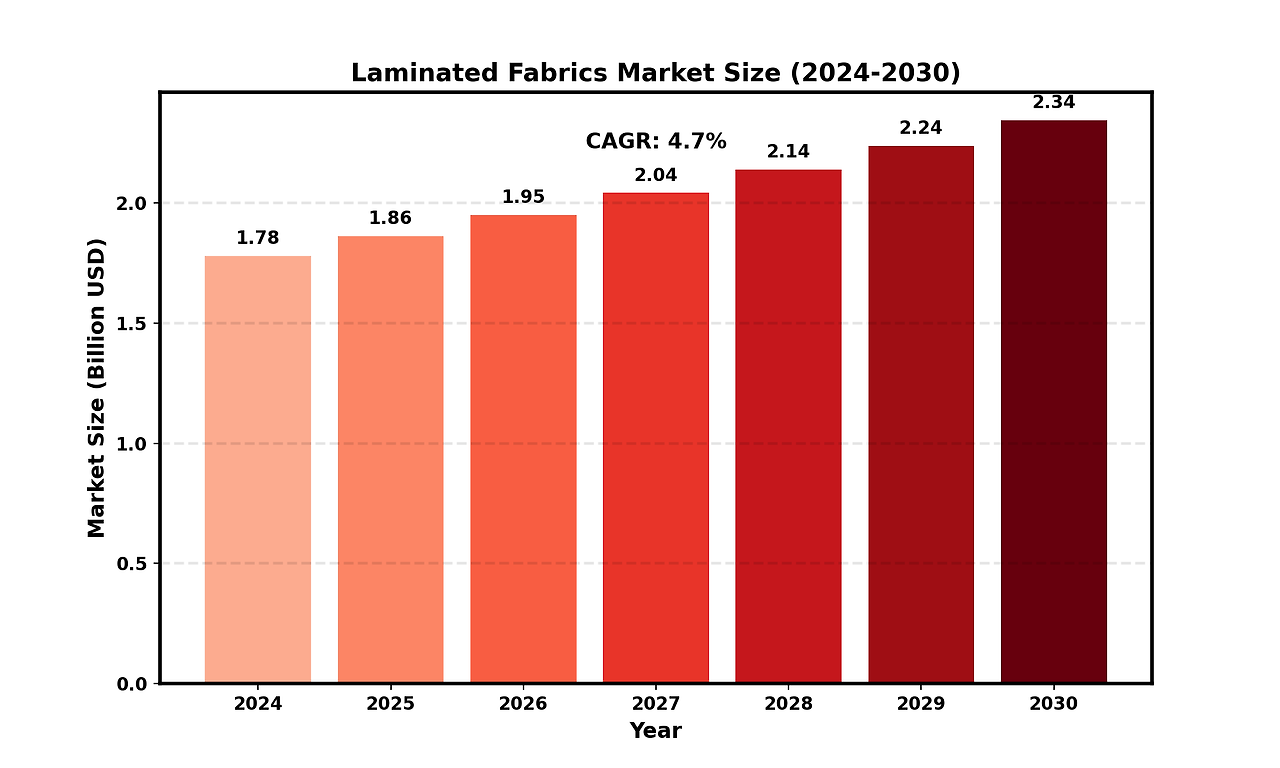 The global Laminated Fabrics market size was valued at US$ 1.78 billion in 2024 and is projected to reach US$ 2.34 billion by 2030, at a CAGR of 4.7% during the forecast period 2024-2030.